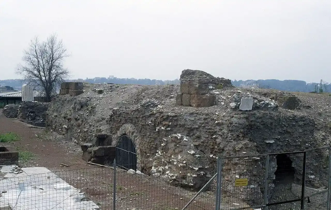 O maior edifício que você encontrará no Monte Palatino é o Palácio de Domiciano. Esse amplo complexo serviu como residência oficial dos imperadores romanos por mais de 300 anos. A construção do Palácio de Domiciano foi concluída em 92 d.C. pelo imperador Tito Flávio Domiciano, mas depois foi ampliada por Septímio Severo.